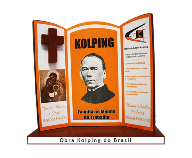 A Capela Kolping é feita de madeira com uma cruz em sua lateral esquerda, os ideais de Adolfo Kolping em sua direita e a foto de Adolfo Kolping ao centro.